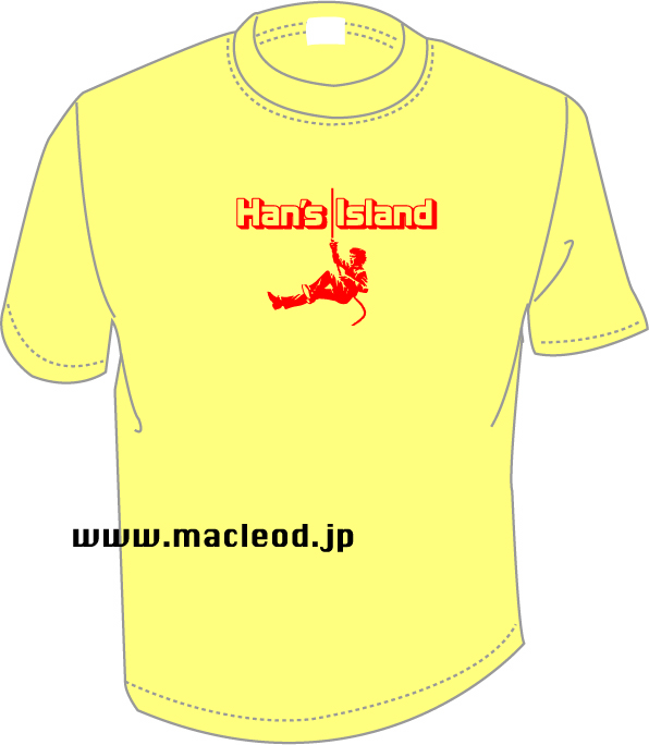 「Han's Island」。昔転写プリント時代のアイテムをワンポイント用にデザインし直したもの。ブルース・リーファンだけが分かってくれればよいアイテムです。