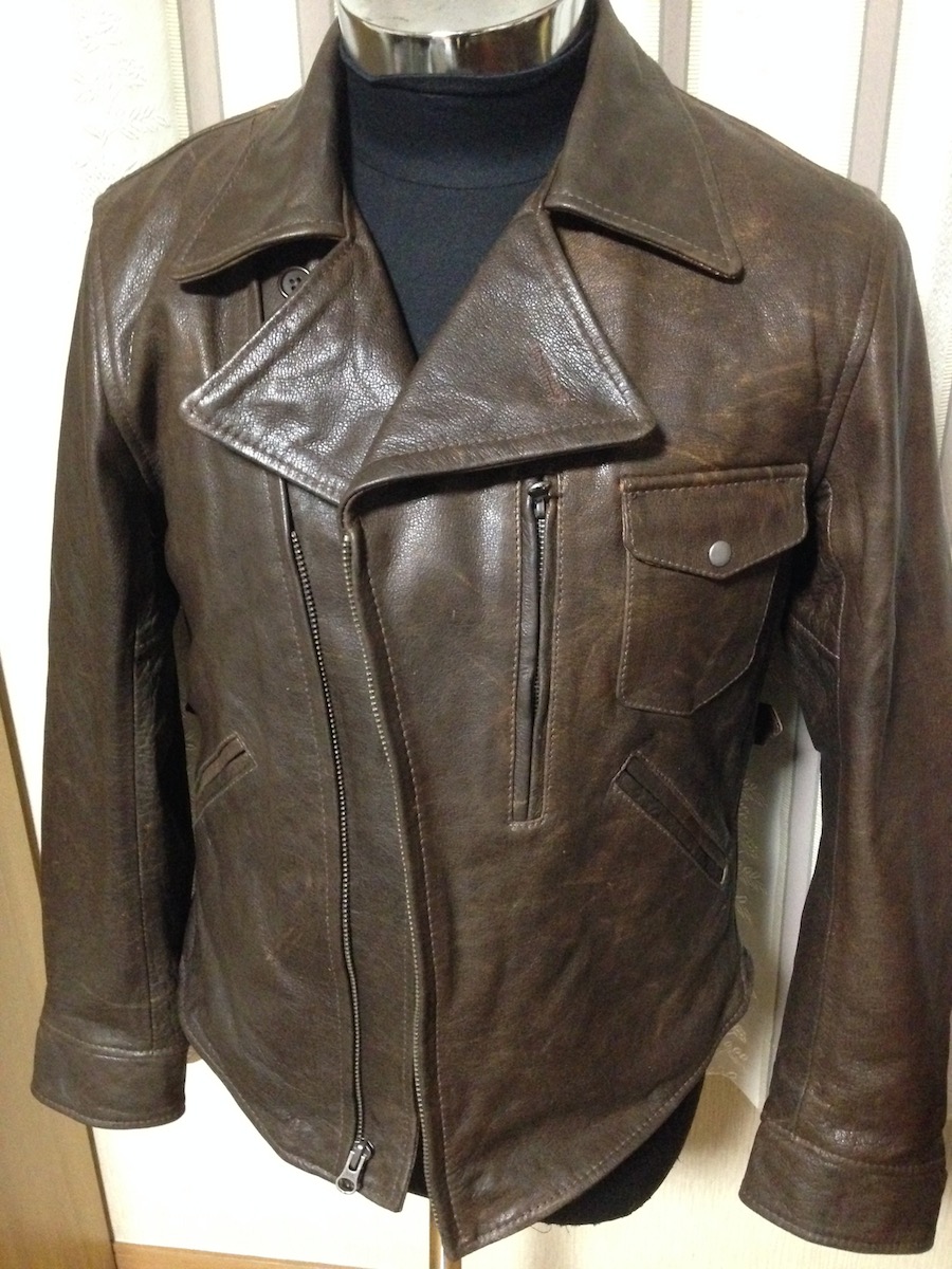 とにかく微妙にムラのあるブラウンの革が、ちょっと前に流行したダメージ加工モノより遥かに自然体の迫力を醸しだしているところが自分的には最大のセールスポイントです。