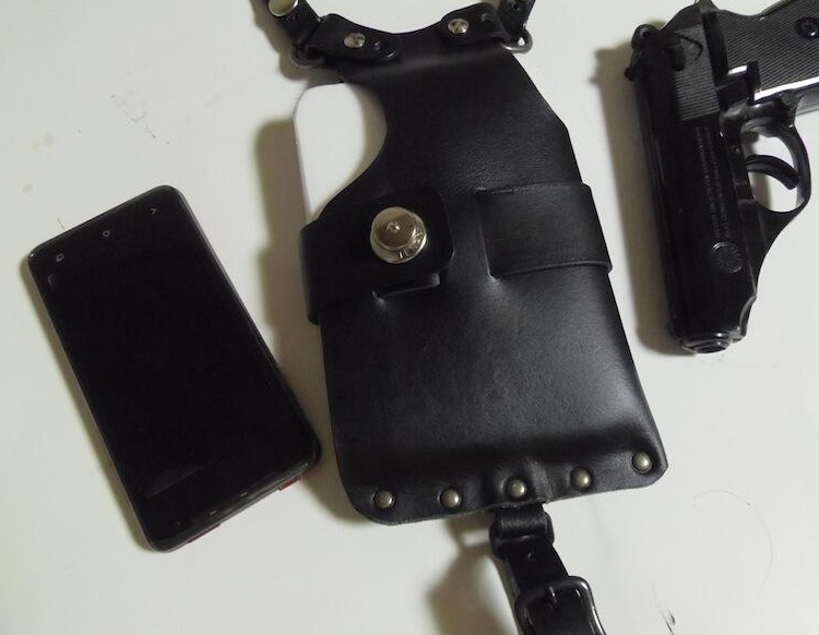 スマホにグリップさえ付けられれば、もっとガンホルスターに近いものが作れるのですが。