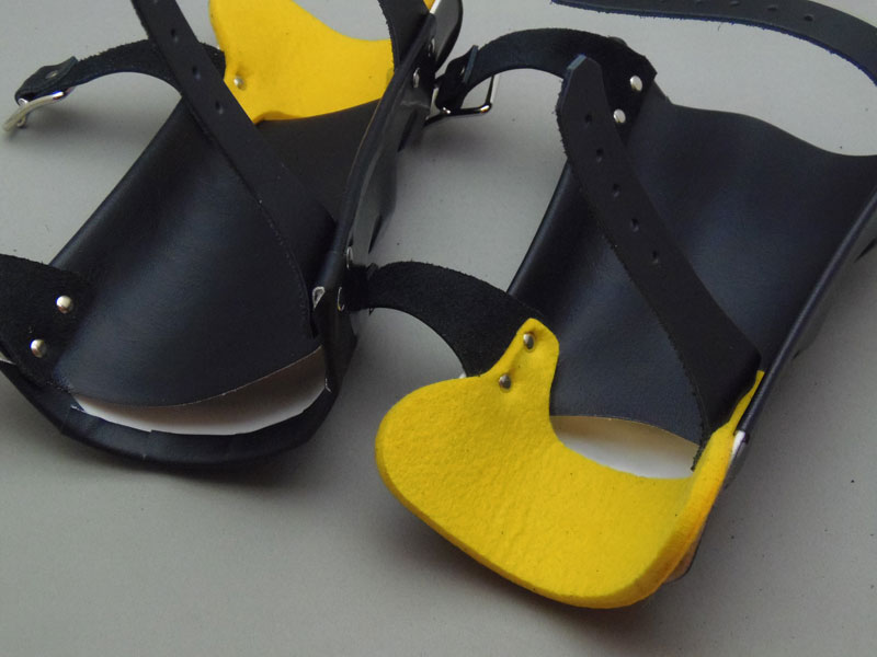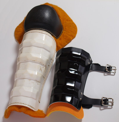 オリジナルのニーシンガードは体に当たる部分にビニール素材で内張りが。