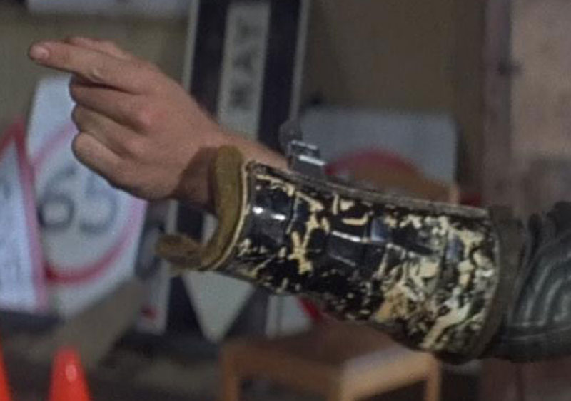 左が本編で使用されたアームガードと同じものと思しきニーシンガードの当時物デッドストック。