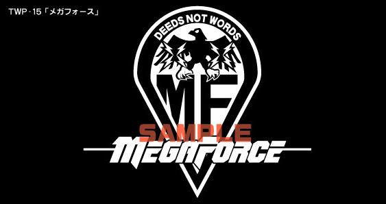 うそーん!まじで「メガフォース」? これ、ほんとに腰抜けました。あまりにも意外すぎ。作品名ロゴ入りの超ベタなアイテムですが、デザインのベースは本編で仕様された刺繍パッチから作り起こした日本では馴染みの薄いマーク。