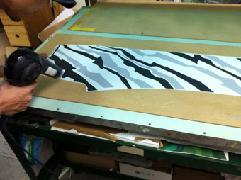 そして出来上ったパターンを超大判のシルク版にてプリント!