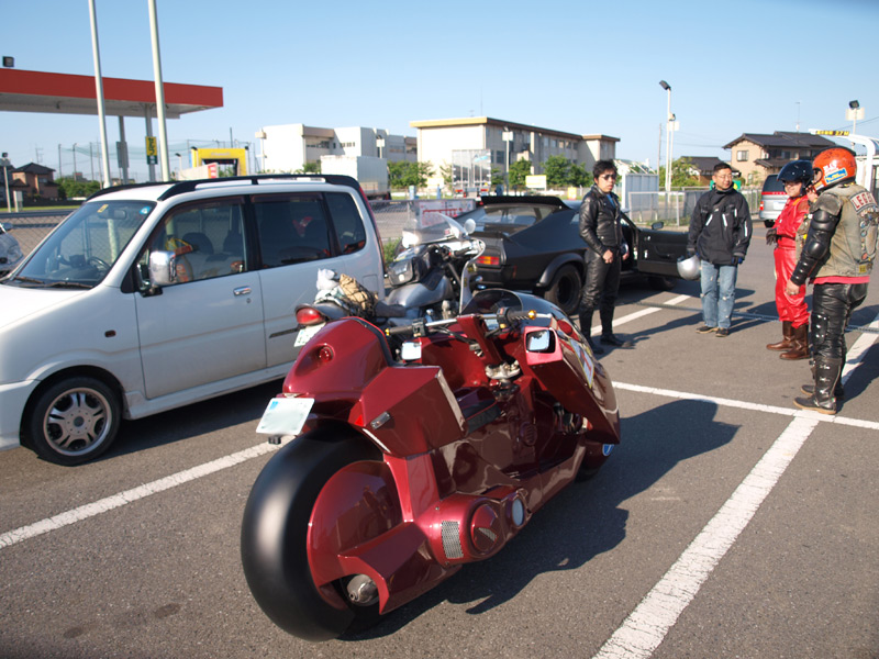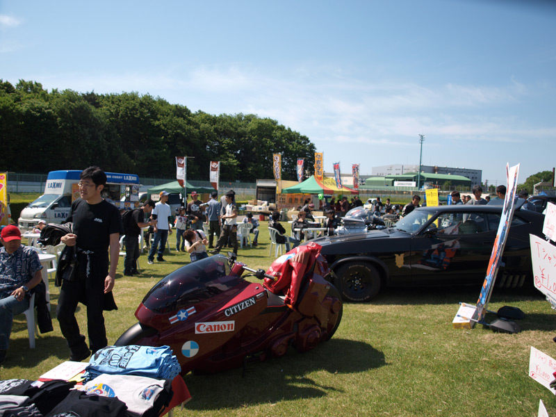 物販は今回Tシャツのみで勝負。目の前にずーっと金田バイクが飾っているという状態での営業。いやぁ、面白いシチュエーションです。ちなみにこの金田バイクの中身はフュージョン。