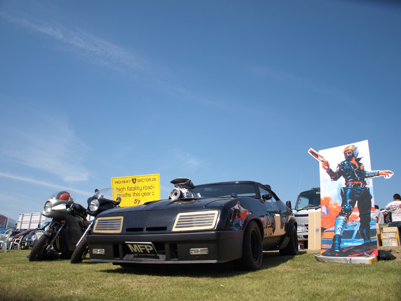 雑誌でも紹介されたMAX-JAPANさんのブラック・インターセプターとミックさんのトゥーカッターバイクなど車輌をマッドマックスコーナー的な感じで展示。