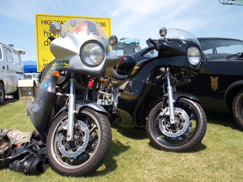 手前のグースレプリカは岩手から応援に駆けつけてくれたデブ輪さん。その筋では有名なバイクムック本「道楽」にも掲載された方です。