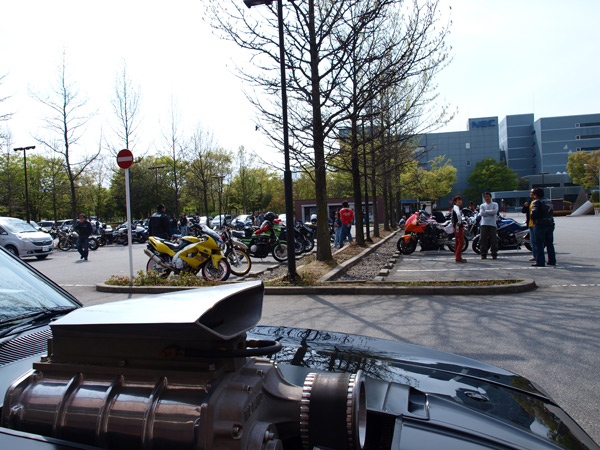 前夜祭。ホテル駐車場に並ぶインターセプター2台。