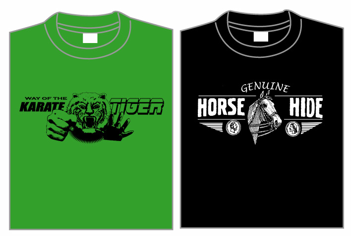 黒い方はビンテージの革ジャンのネームタグなどにありがちなイメージで、「ホースハイド」と。