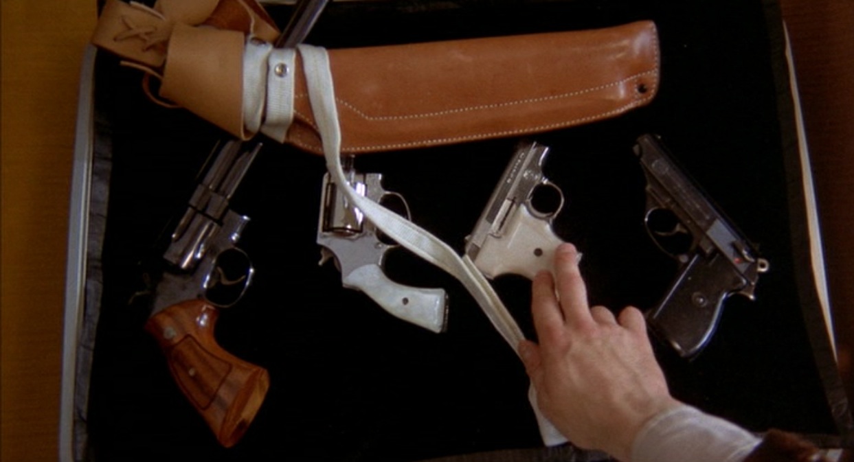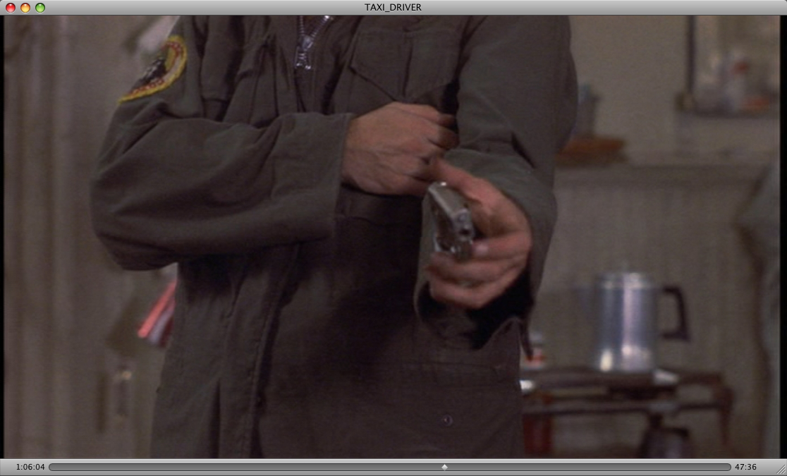 で、この銃、「タクシードライバー」劇中ではクライマックスに活躍しなかったんですが、よくよく考えたら、途中、ドラッグストアの強盗を退治した時、この銃は店に置いていったんですな。