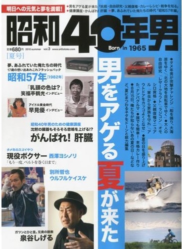 昭和40年といえば、まさにズバリ「昭和40年男」なんていう雑誌が刊行され、3号目を迎えております。同世代の著名人へのインタビューにはじまり懐かしグッズ、サブカルの紹介がメイン。